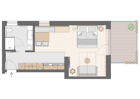 Comfortable studio for 2 adults + max. 2 children. The one-room suite is equipped with a bathroom with shower / toilet, a fully equipped kitchen and a balcony. The Studios Superior D are located on the 3rd floor. We ask for your understanding that if you prefer a floor, we cannot always comply with this request, even if you notify us in advance! See the studio photos for the balcony view.